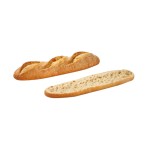 Classic white half-baguette. Uses a fermented dough for an even better taste, pale cream interior. Made with wheat flour Label Rouge.