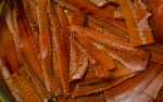 Conservas Nardin only buys anchovies caught in the Cantabrian Sea; the fish destined to be used for their smoked anchovies are brined, rather than salted, and then cold smoked whole over beechwood before being filleted and then tinned in olive oil. They are tender and moist, mildly fishy and lightly smoky, truly delicious.